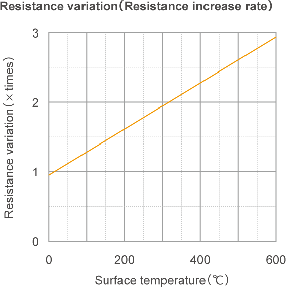 *Above mentioned wattage is measured at normal temperature conditions. The value will change along with the increase of temperature. Refer to below chart of resistance variation.